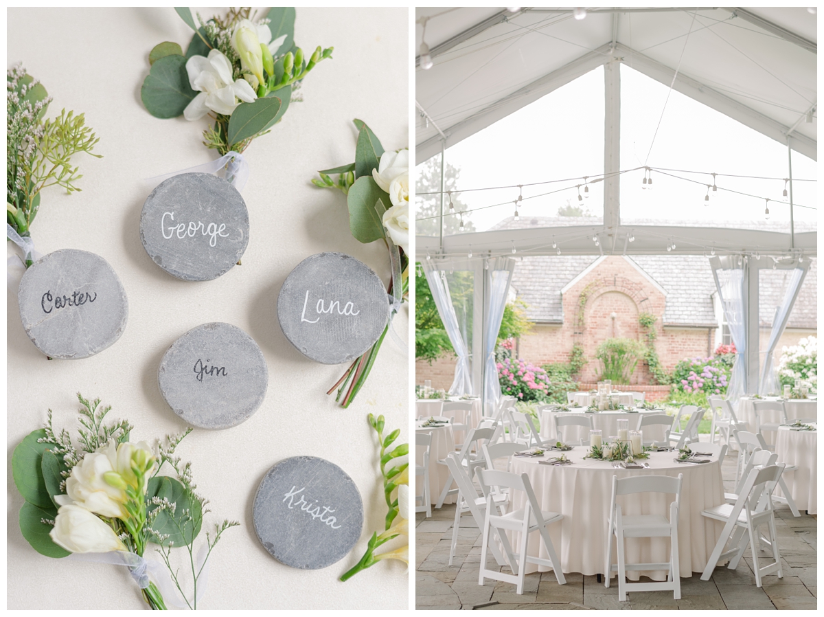 Brooke and Kyle‘s wedding day experienced a sudden rain shower right when it was time for their ceremony. Which moved their vows from the previous outdoor location to under the tent. However, with Drumore Estate’s beautiful backdrop, and the groom’s son serving as their ring bearer, Brooke & Kyle’s vows were still absolutely gorgeous!