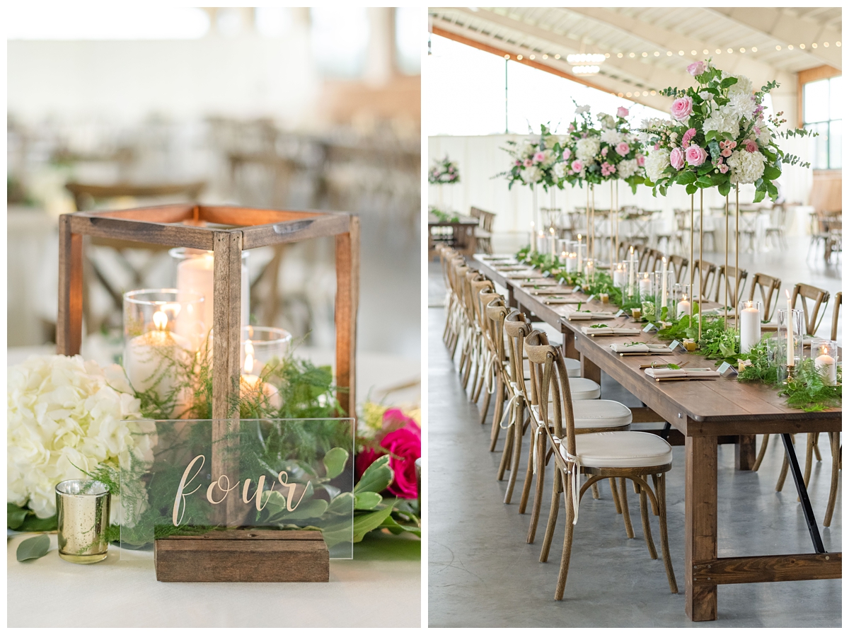 The wooden lantern centerpieces that Katie and Stan used for their Vignon Manor Farm Wedding were all handmade by the groom! Katie describes Stan as a man who is always working on a project! From working on cars to building anything and everything and now gardening (which he has introduced to Katie!), Stan loves to keep busy.Â
